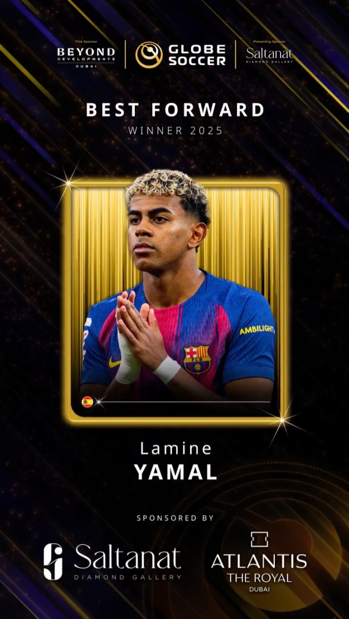 12月29日讯 2025环足奖颁奖典礼今日举行,亚马尔荣膺最佳前锋奖。